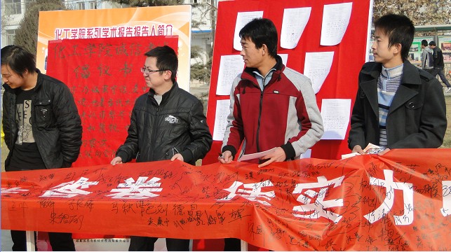 (三)12月22日,开展了诚信考试签名活动,学生们在横幅和各班级印制的签名书上纷纷签了名,表示要诚信考试,杜绝作弊。