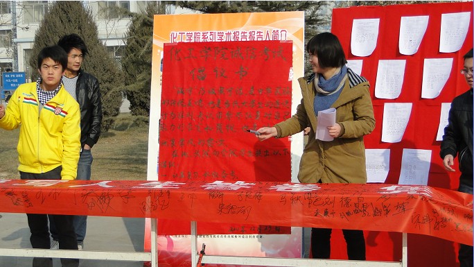 (二)12月22日上午,在学院网页上发布了诚信考试倡议书,同时制作悬挂了“用诚实谱写人生答卷,凭实力收获理想成绩”的横幅。