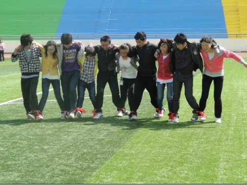 阳春三月,柳树吐丝。2012年3月31日,yl88858永利中国在新操场举行了“10人11足”绑腿跑比赛。一根普通的布条,将10名运动员的腿连在了一起,同时也将他们的心凝聚在了一起。他们肩并着肩,齐心协力在阳光下向终点跑去。赛场上运动员们紧密配合,顽强拼搏,团结合作,为各自的班级赢得了荣誉。2011级应化3班夺得冠军,2011级化教班与2011级应化2班,分别获得了第二名和第三名。