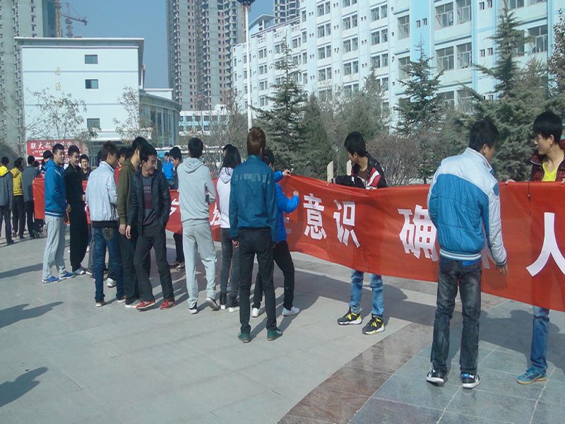 此次教育活动共涉及交通安全、宿舍安全、人身安全、财产安全等六个方面的内容,共计六百余名学生参加了签名活动,大家纷纷表示要:遵守交通法规,关爱生命旅程;维护交通秩序,争做文明公民;常敲安全警钟,保证人身安全。