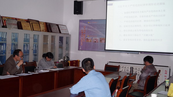王书记首先从加强纪律建设是全面从严治党的治本之策、严明党的纪律首要的就是严明政治纪律等七个方面学习了习近平总书记关于严明党的纪律和规矩论述。随后强调指出,党的十八大以来,习近平总书记高度重视全面从严治党,各位老师要将纪律规矩学习与《中国共产党廉洁自律准则》和《中国共产党纪律处分条例》学习结合起来,与学校党代会确定目标任务结合起来,与学院的工作重点结合来,与自身职业素养和本职工作结合起来,通过学习活动,进一步增强政治意识、大局意识、核心意识、看齐意识,讲规矩、守纪律,履职尽责,做好人才培养,为学院的转型发展积极做贡献。