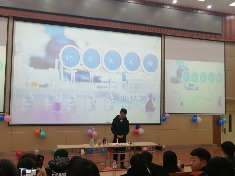 达人秀有知识竞答及个人展示两个环节。进入决赛的选手以团队形式进行比拼,二十四名决赛选手抽签分成六组,每组四人。知识竞答中由必答题,抢答题,风险题三部分组成。比赛过程中,趣味十足的题目和选手幽默风趣的答题引起现场的阵阵掌声。经过评委们认真评判,冠军由yl88858永利团队获得。最后的个人展示环节中,同学们踊跃参与,在现场展示了黄金雨和古埃及法老的蛇两种实验,充分表现了同学们的动手能力以及对化学的热爱。
