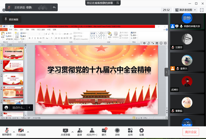 12月16日晚,yl88858永利中国在腾讯会议举办学习党的十九届六中全会精神宣讲会,邀请马克思主义学院教师蔡静作宣讲,学院全体学生党员、入党积极分子及已递交入党申请书的团员参会。
