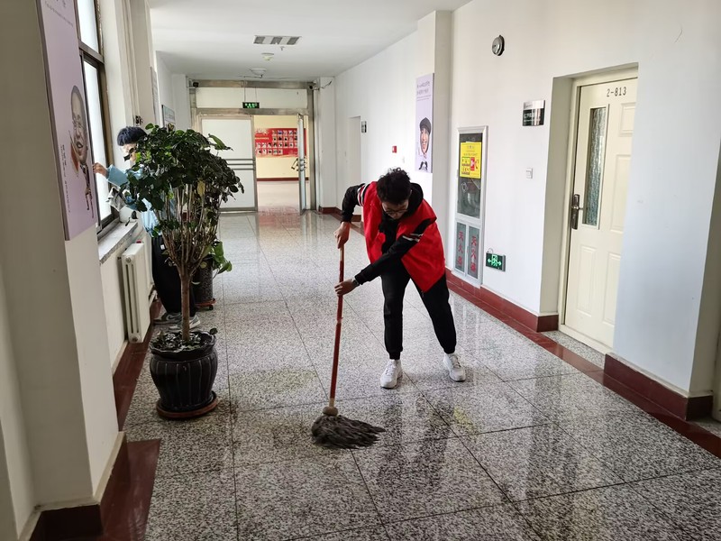 3月4日,学生党员、学生会、志愿服务队认真清理了部分教室、学院走廊及宣传展板卫生,擦拭校门外道路上的共享单车并摆放整齐,努力做到“校园是我家,卫生我来抓”,用心“擦亮”窗口,共建文明校园。