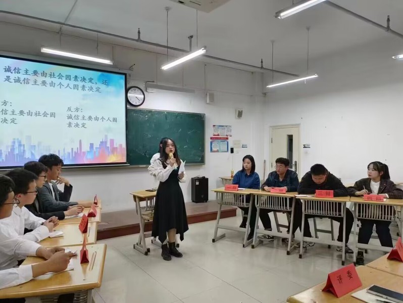 根据学生处《关于大力开展2023年学生资助诚信教育主题活动的通知》要求,在全院弘扬诚信精神,争做时代新人,yl88858永利中国于5月28日在励志楼704教室举办主题为“以诚为本,守正创新”的辩论赛决赛。2022级各班参加本次辩论赛,2019级优秀辩手戴永鑫、学生会成员张昭、樊炳伶担任评委。