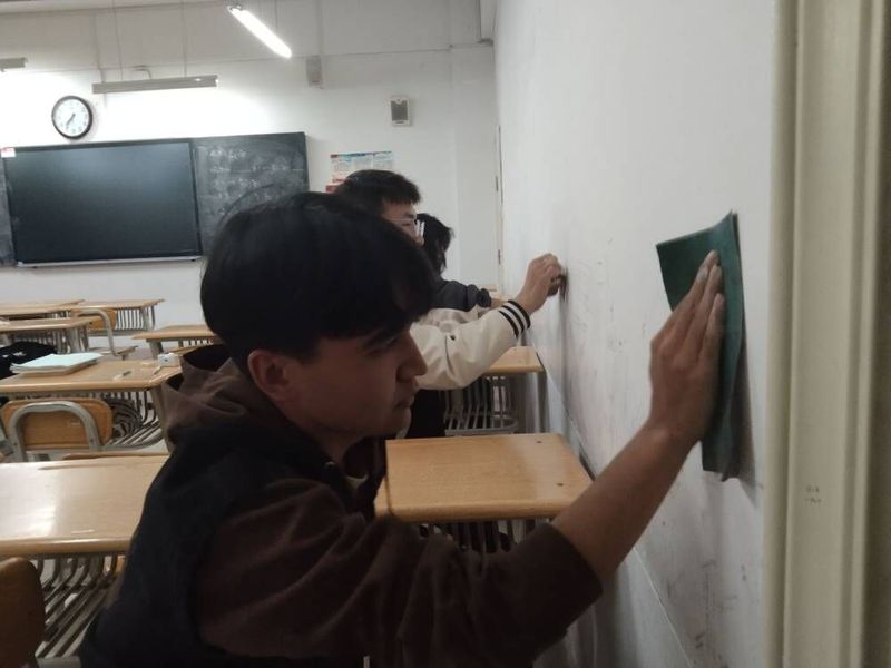 3月11日,志愿服务队组织志愿者们用砂纸认真清理了教室墙面的涂鸦与字迹,让教室墙壁焕然一新,用实际行动践行雷锋精神。