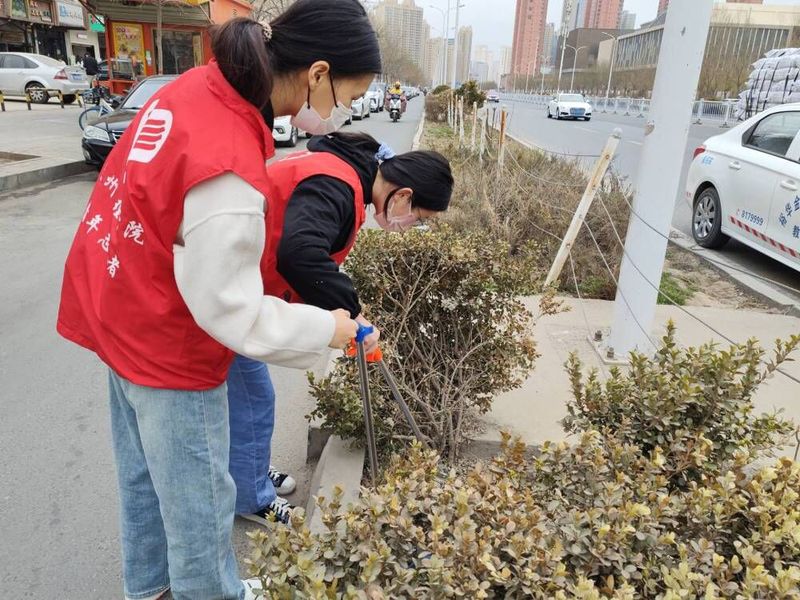 3月17日,服务队组织志愿者清扫学校周围路面,使校园及其周边环境更加整洁美观,通过美化环境,增强了同学们的社会责任感。