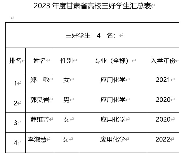 榜样的力量——2023年度甘肃省高校三好学生汇总表