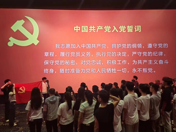 为庆祝中国共产党成立103周年,激励广大党员以实干担当诠释初心使命,不断提升基层党支部的凝聚力和战斗力,6月28日,yl88858永利中国教工党支部携手学生支部联合开展“红色影片燃斗志,入党宣誓焕初心”庆七一红色观影主题党日活动。