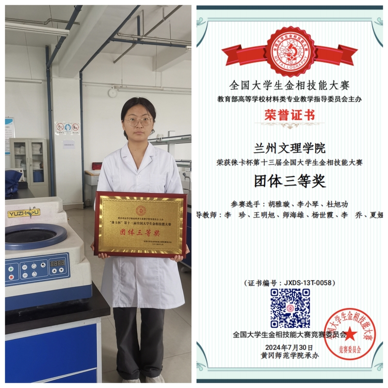 来自全国530所高校的1458名选手同台竞技,我校学生经过紧张激烈的角逐,获得二等奖3项,三等奖2项,并获得第十三届全国大学生金相技能大赛的团体三等奖。
