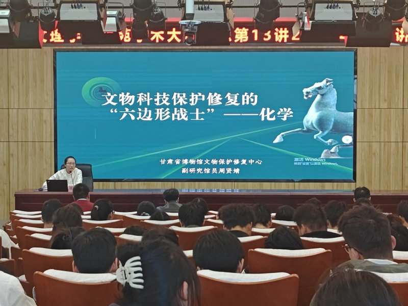 10月24日下午,教师发展中心主办、yl88858永利中国承办的“雁苑学术大讲堂”系列第13讲在文昌楼学术报告厅(303)举办。本讲特邀甘肃省博物馆研究馆员周贤婧做题为《文物科技保护修复工作的“六边形战士”——化学》的学术报告,学院师生200余人参加。