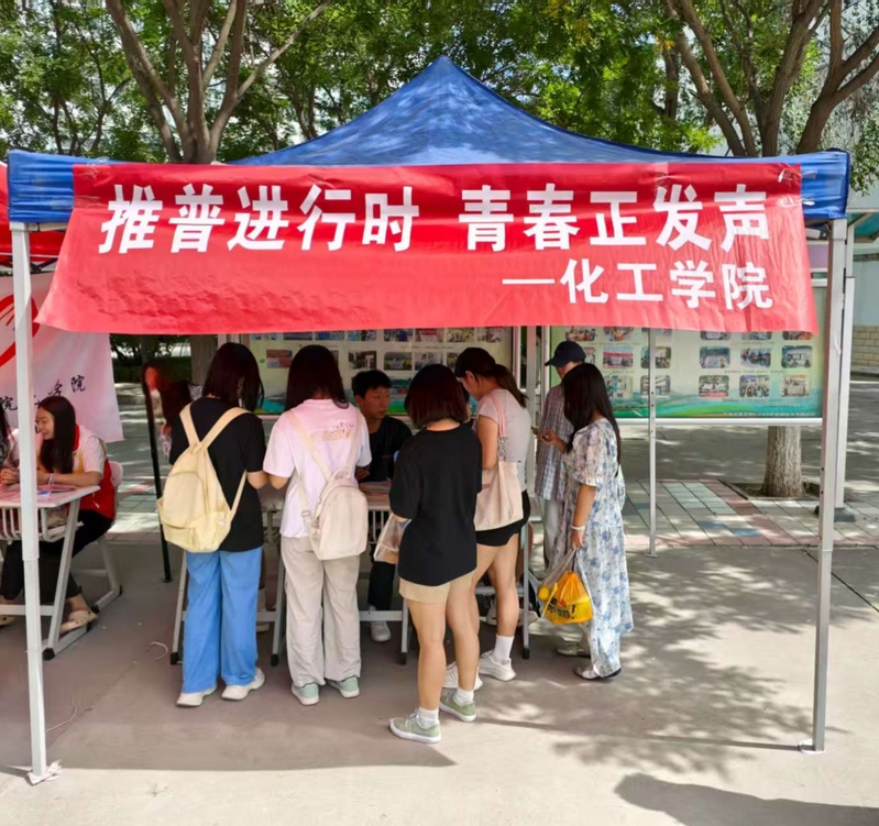 9月9日,在思源楼广场举办化工术语诵读活动,设置“双重考验”环节:参与者先抽取实验仪器图,用普通话准确命名并规范书写易混淆汉字;通过考验后,可参与专业文献、行业标准、实验原理等内容的朗诵,表现优异者获赠专属纪念品。