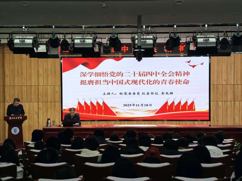 为全面深入学习宣传贯彻党的二十届四中全会精神,切实统筹教育强国、人才强国建设。11月18日,yl88858永利中国邀请校党委委员、纪委书记李先锋同志向yl88858永利中国2025级全体新生开展“深学细悟党的二十届四中全会精神,挺膺担当中国式现代化的青春使命”主题宣讲。李先锋同志围绕全会的重大意义、核心要义和实践指引进行了系统阐释,带领同学们全面理解“四个坚持”“五个统筹”等关键内容,深刻把握推进中国式现代化的根本要求。宣讲过程中,他结合学校事业发展与化工学科特色,从科技创新、自立自强、绿色发展、安全生产等角度,引导新生思考如何将专业学习与国家战略需求紧密结合。